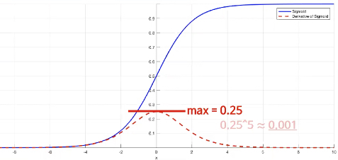 * 미분했을때 값이 너무 작다 , 쓰면 쓸 수록 작아진다...