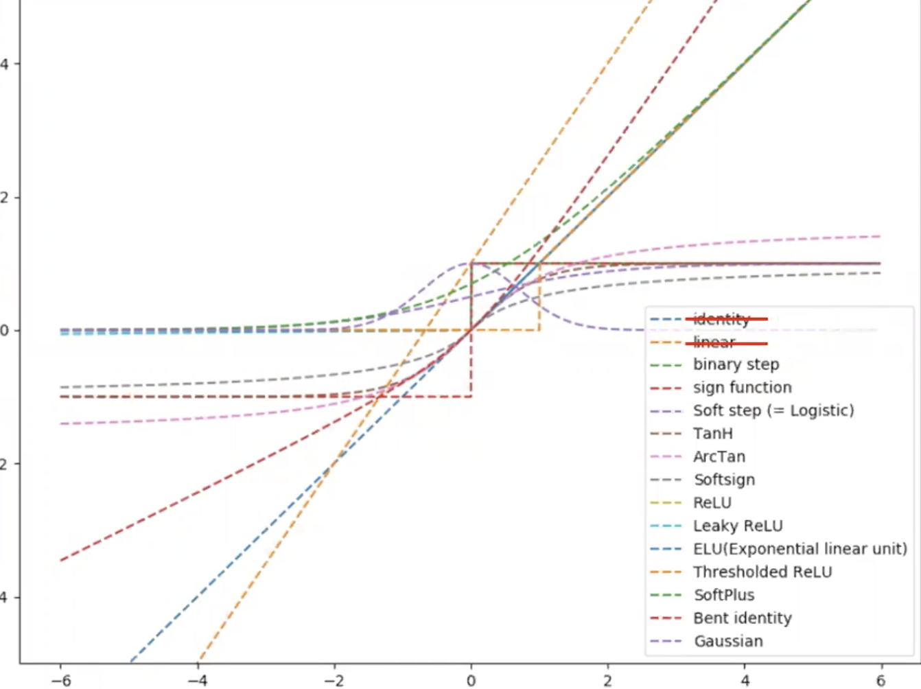 - 활성화 함수는 선형함수를 구부러트려 주는 함수라고도 볼 수 있다.