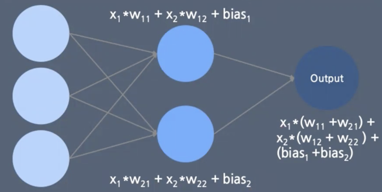 하지만 아무리 Layer 를 많이 쌓더라도 결국 복잡한 선형회귀식이 될 뿐이다.