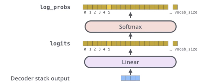 확률값(Softmax score)을 가지게 되고(vocab_size 만큼에 대한 각각의 확률값)