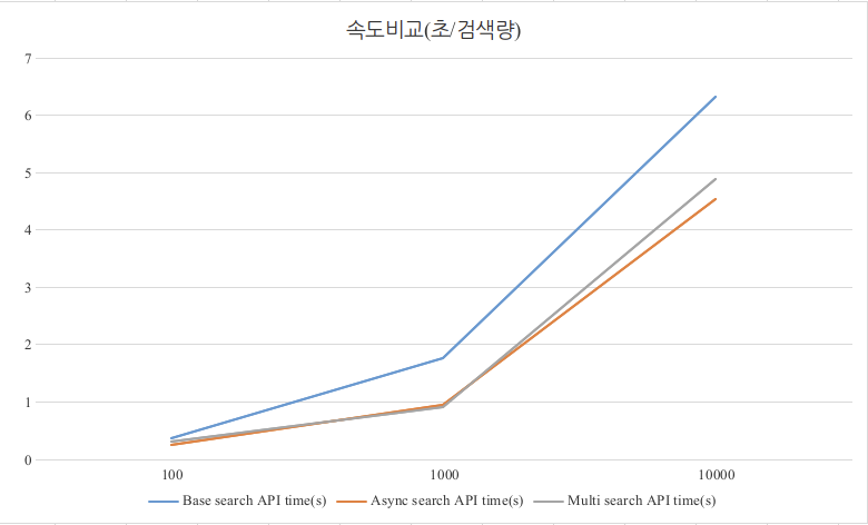 Msearch 와 AsyncSearch 의 성능은 미세한 차이로 AsyncSearch 가 좋았다.