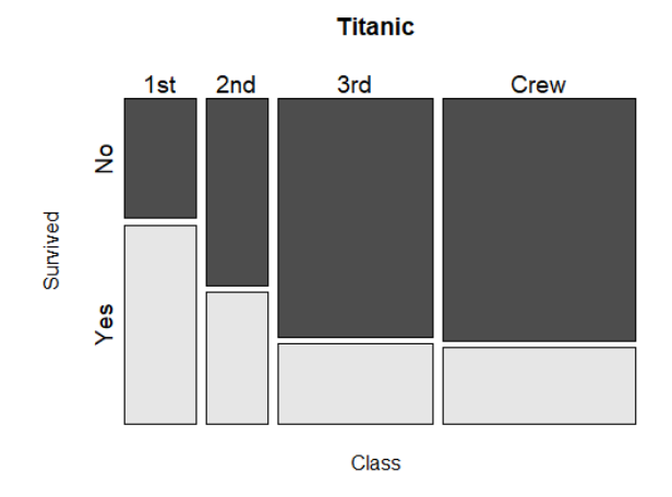 예) 타이타닉호 탑승실 등급과 생존 여부의 모자이크 플롯