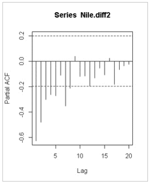 부분자기상관계수(PACF)를 이용한다.
