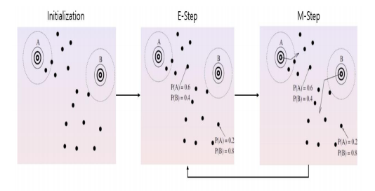 - 모수의 값이 변하지 않을 때 까지 반복 ( 평균과 분산이 계속 변동이 된다.)