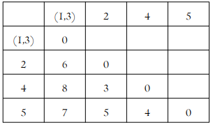 | d((1,3),(2,4,5))=min(d(1,3),(2,4),d((1,3)),5)}=min{6,7}=6 |