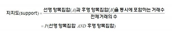 support(A->B) 의미는 IF A 구매 THEN B 도 구매